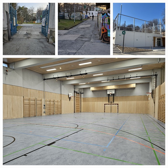 Dieser neu errichtete Turnsaal befindet sich auf dem ehemaligen Areal
